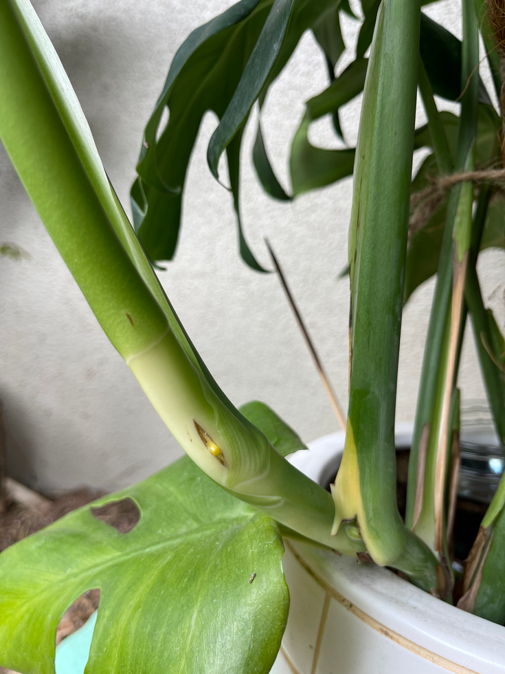 These are the biggest Monstera leaves I've ever had ; I'm obsessed with the fenestrations in this leave. ; I added the propagated baby to the big plant and my hope is that it will fill the middle up
